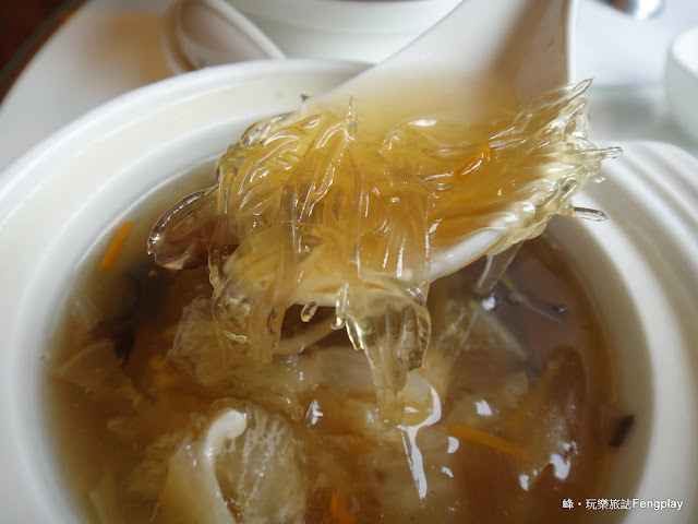 ▲有跟服務人員詢問,每次贈送的都不一樣,我們這次剛好送魚翅羹,真是好運。