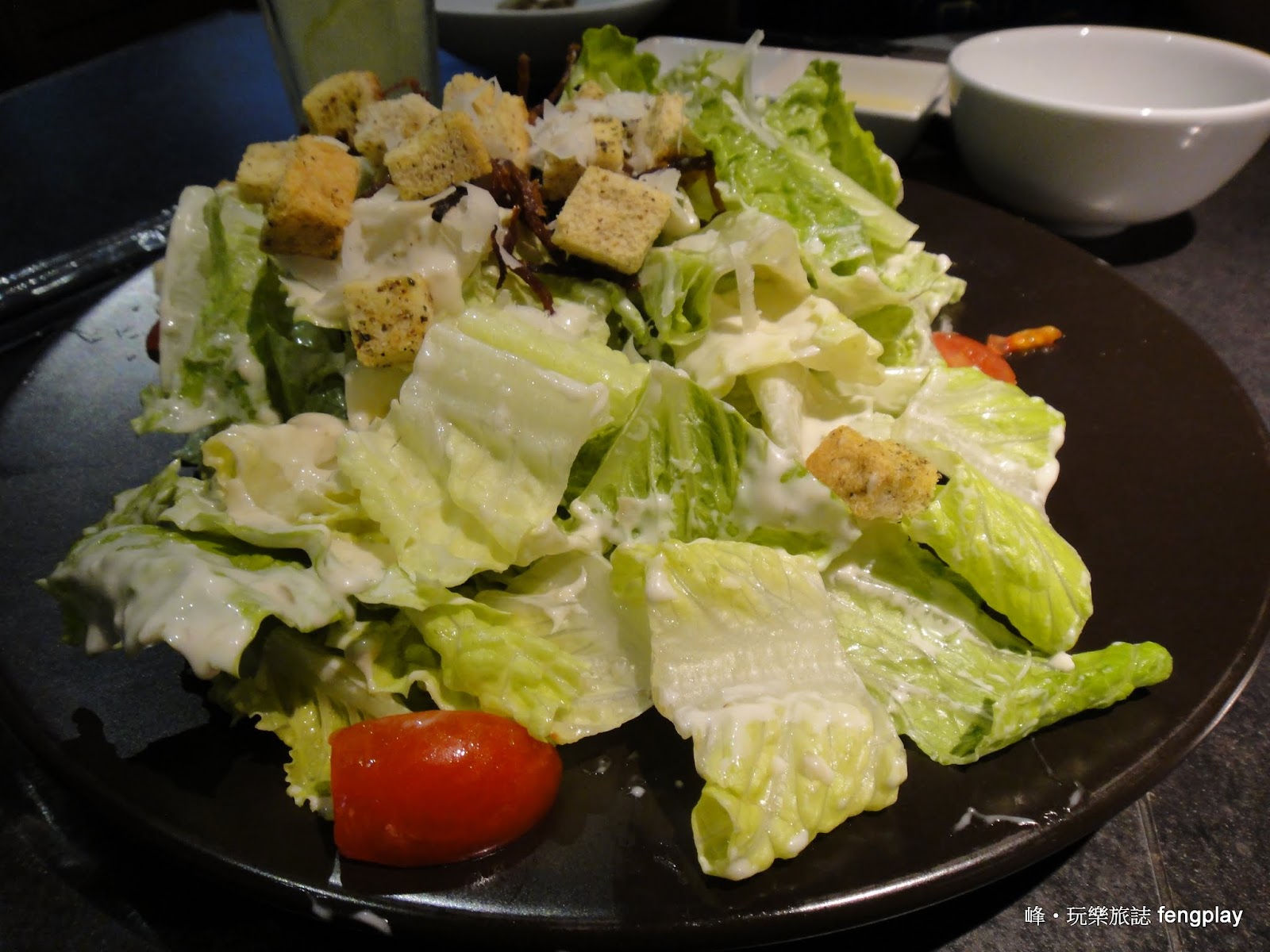 ▲凱薩沙拉,生菜很大盤,吃肉前請多吃青菜,生菜吃起來脆甜多汁。