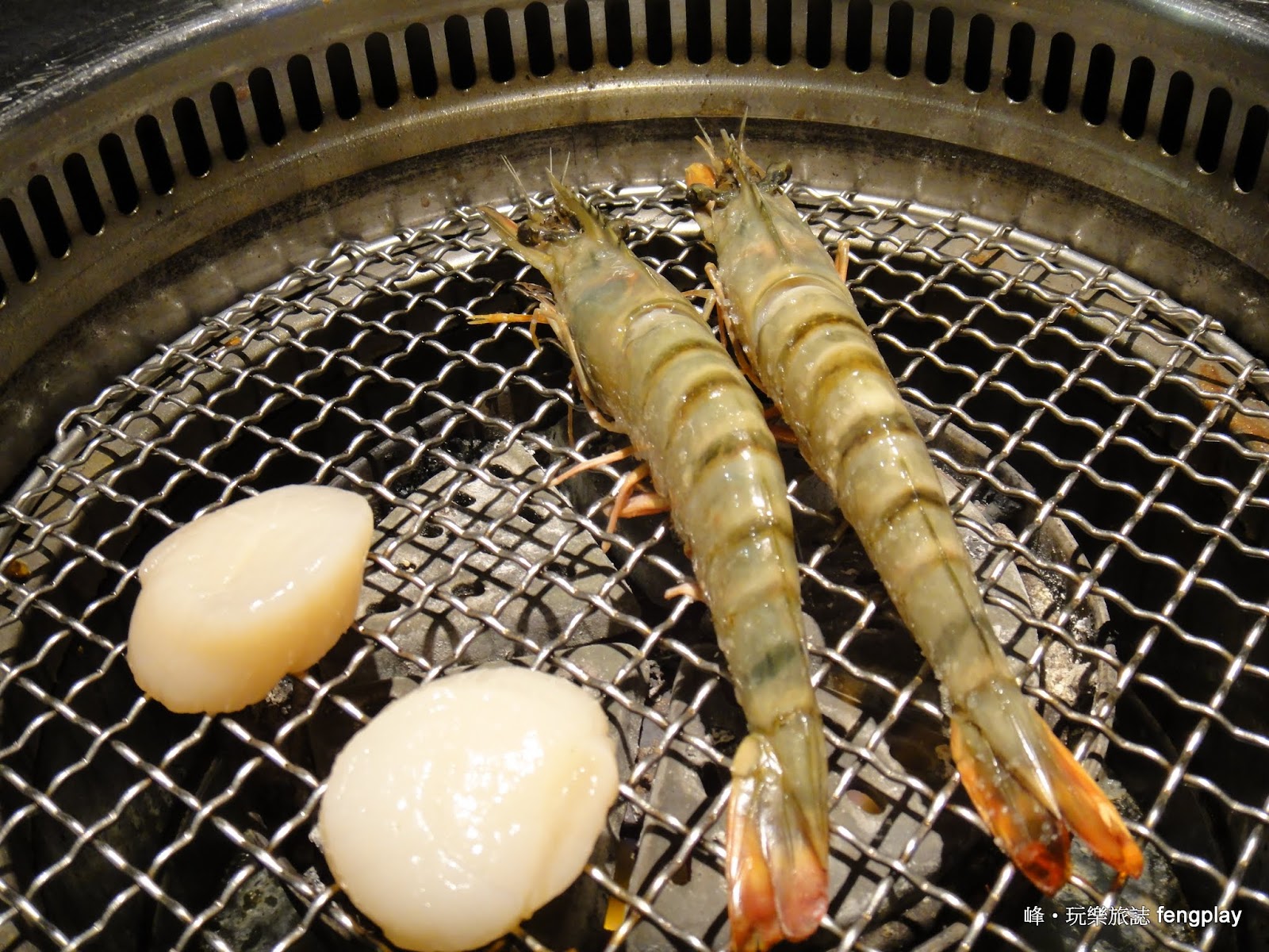▲最後換上新烤網幫我烤草蝦跟生食級的干貝,草蝦的肉真的好紮實,又脆又甜,這一道千萬甚麼都別沾,沾了味道就跑掉了。