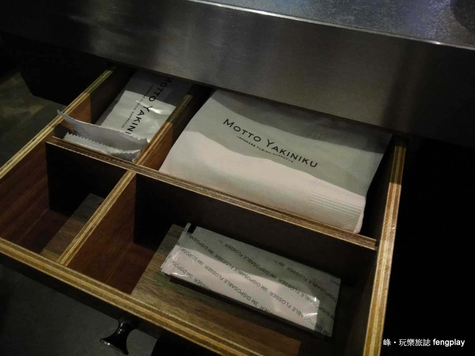 ▲餐巾紙與濕巾都放在桌邊的抽屜,讓桌面乾淨又有質感。
