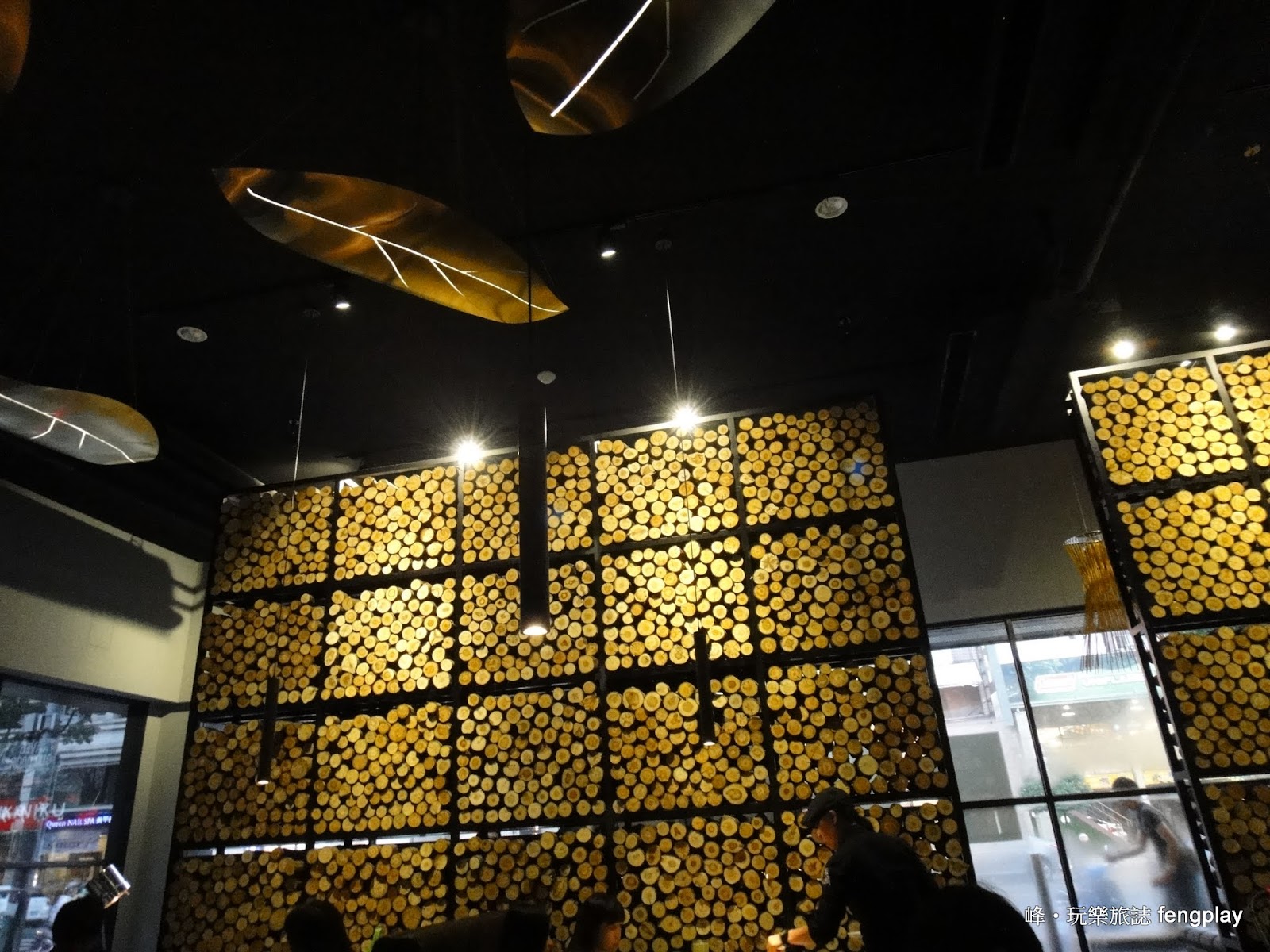 ▲櫃檯區,用推砌起來的木頭變成一個屏風,因為是烤肉所以用木頭最符合主題,而且真的很有創意。
