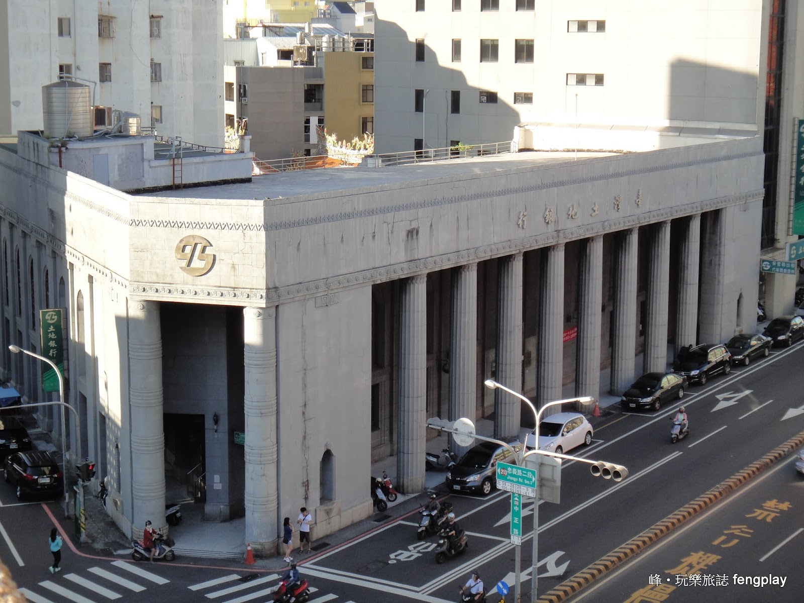 ▲在林百貨頂樓可以清楚觀看對面的古蹟台灣土地銀行的建築。