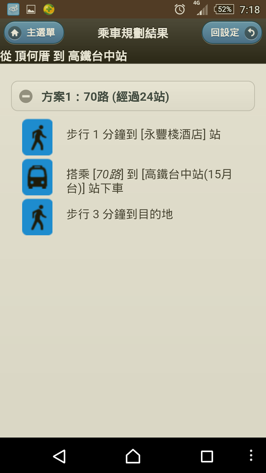▲將會提供搭車路線方案,這個路線告知我到哪裡搭車,與搭哪一班車一定會到達目的地。
