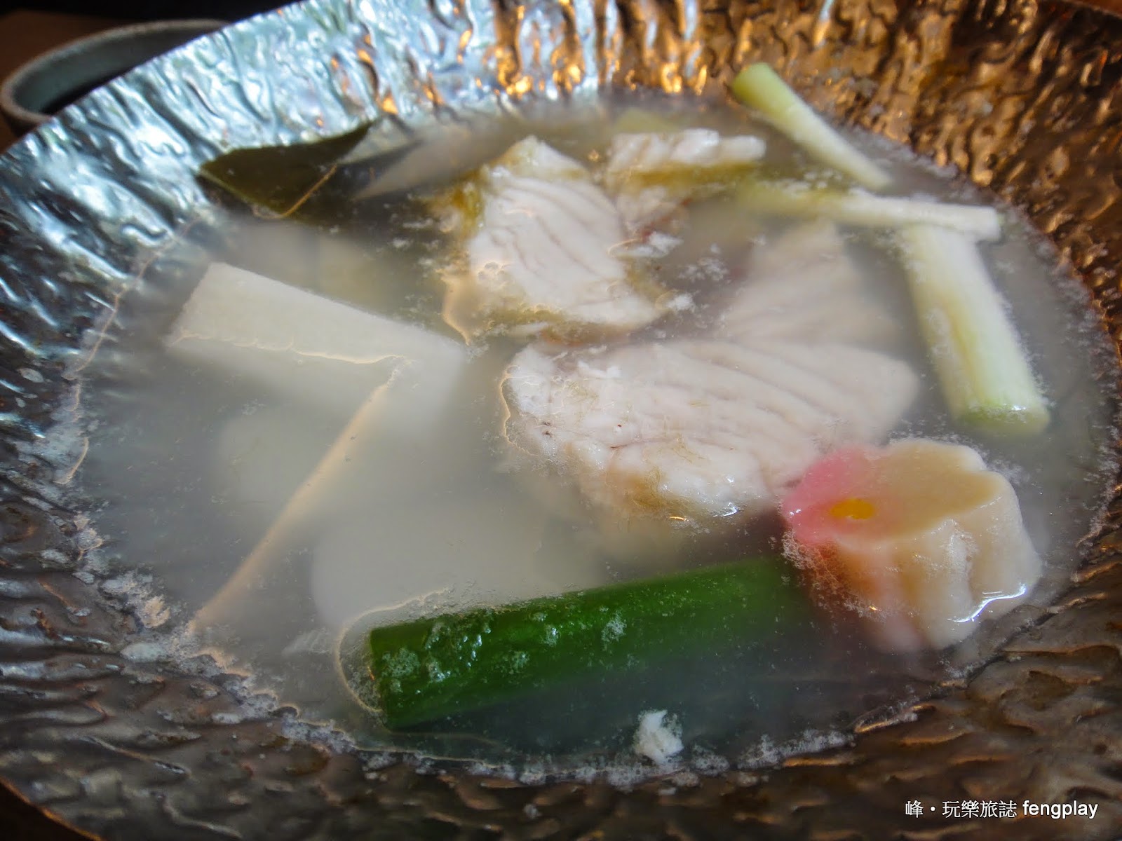 ▲ 太和芋昆布鍋,湯頭清甜用蔥去腥,喝起來也有一點蔥甜味,魚肉紮實膠質部分很有嚼感,裡面白白的是年糕,讓湯也有一點米湯的味道。