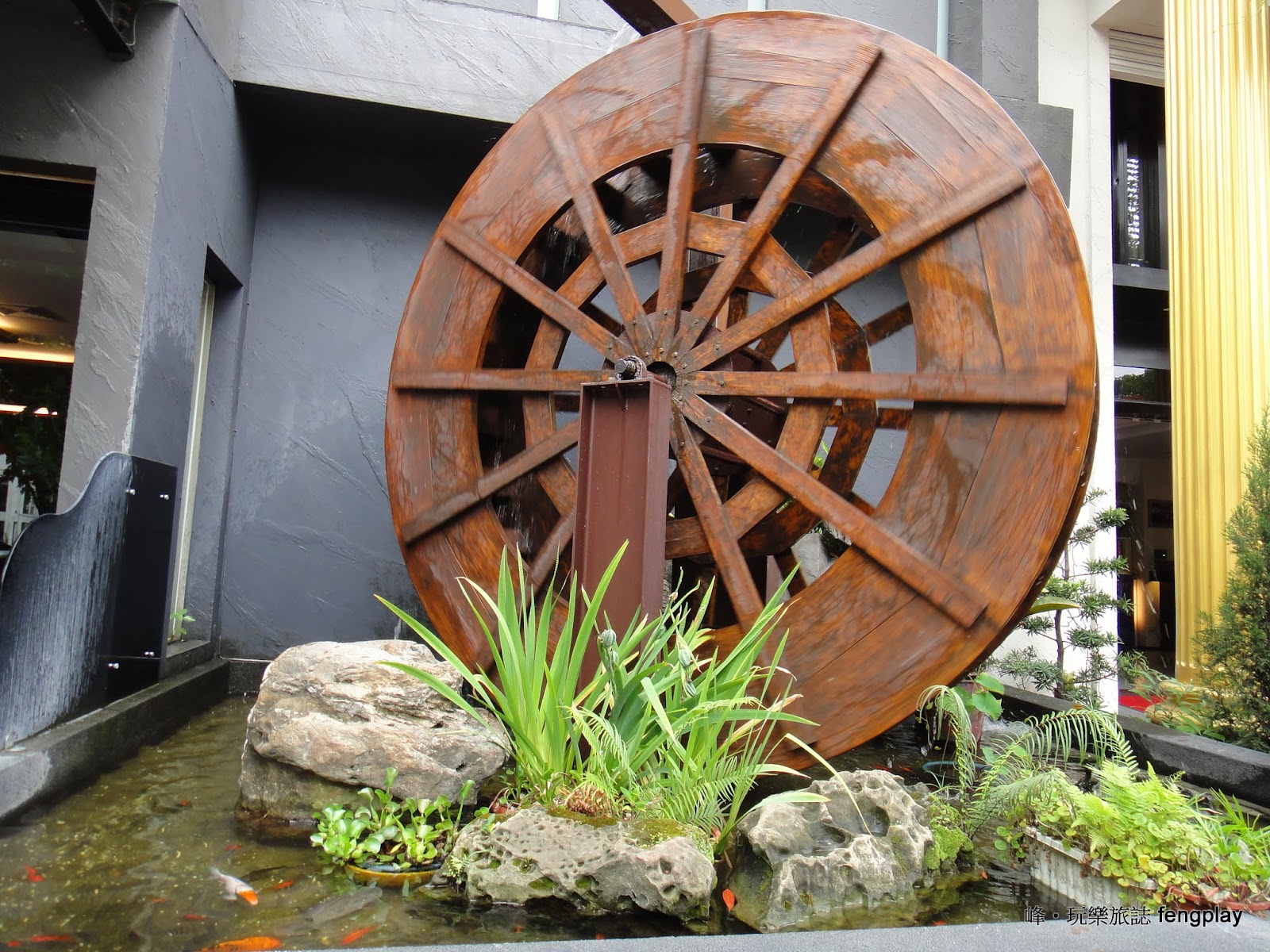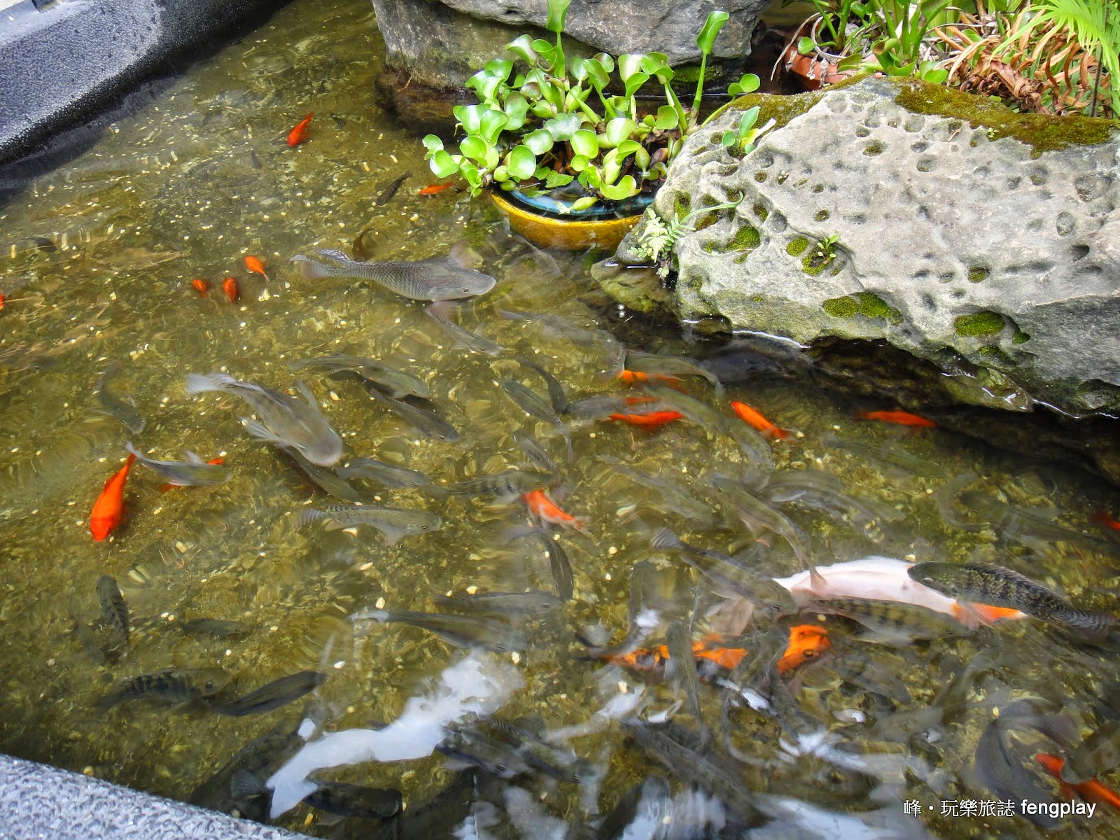 ▲ 水車的水池中也有許多的魚,我有看到一些鯉魚,其他黑的我就不知道是甚麼魚。