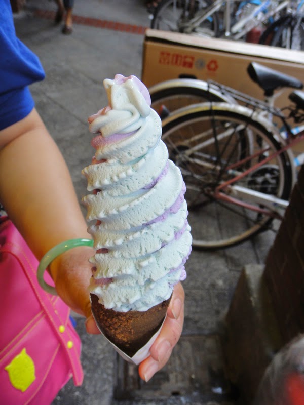 薑薑,買到拉!! 我挑巧克力牛角,冰淇淋是老婆挑的我也忘記是甚麼口味了,天氣很熱才走出門口就已呈現快溶化的狀態。