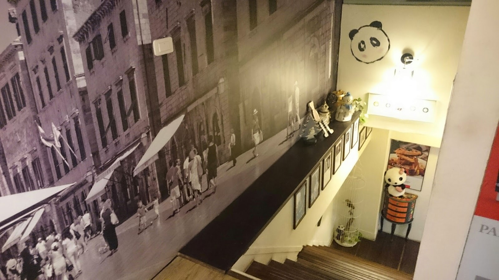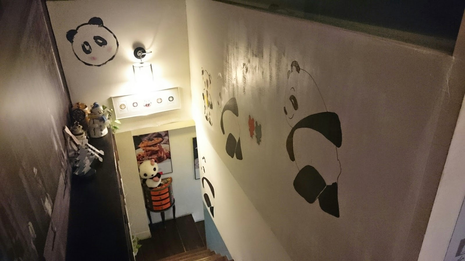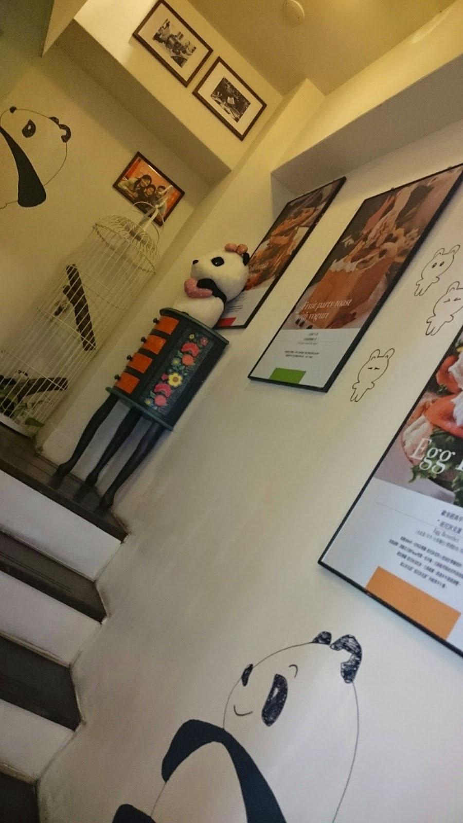 ▲二樓也有用餐區,樓梯間也有放很多的擺飾還有熊貓的插畫。