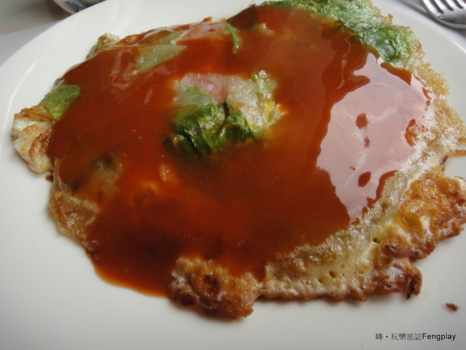 ▲現做的海鮮煎,用的是蝦仁,今天服務的師傅手藝還不錯,吃起來很好吃。