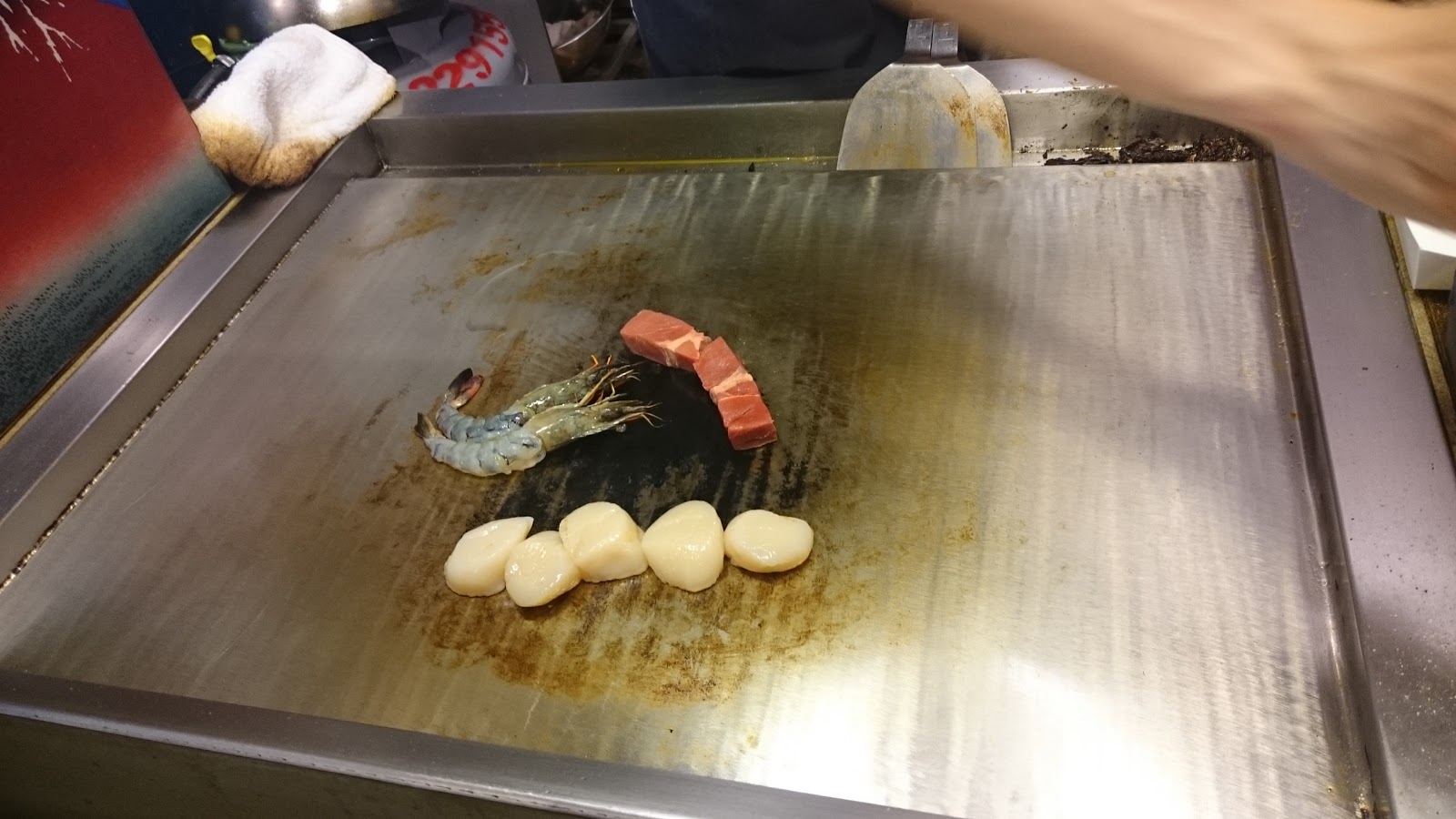 ▲ 我們最愛看的鐵板燒師傅灑鹽技術,技術好會影響料理味道是否適中。