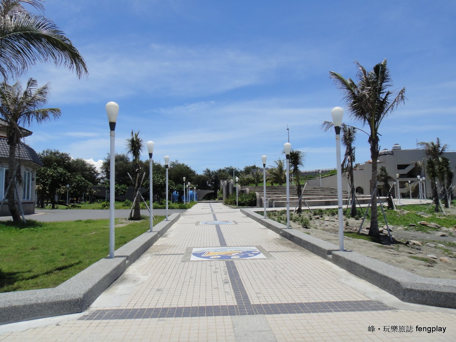 ▲接下來我們來到了 貝殼館,說真的動線讓我不知道要到哪找哪裡可以逛,場地很大,太陽也很大,於是看到了這個地標,與大海互相輝映。