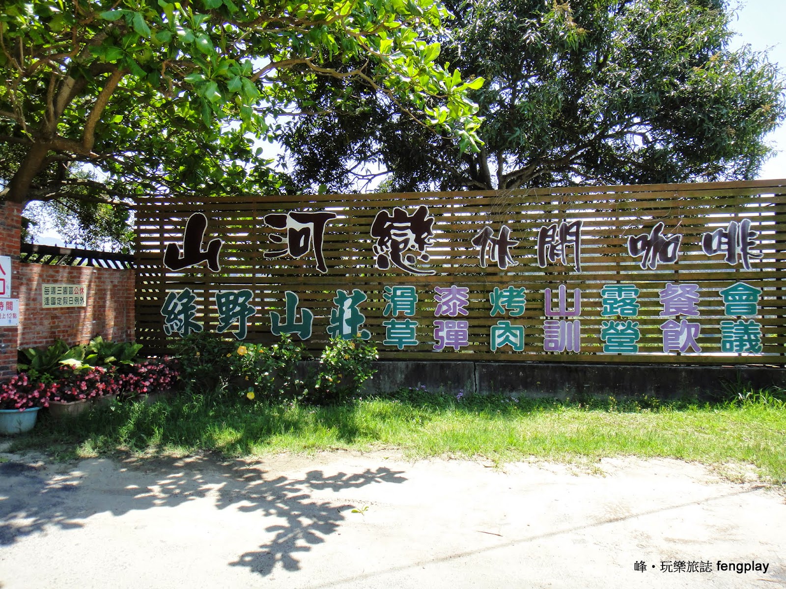 今天主管請我們到山河戀休閒綠野山莊吃飯,環境很清幽,是吵雜的都市中取靜的好地方,位在半山腰以下,感覺沒有很高,可是視野很不錯。 ▲入口的招牌,提供的服務很多,還有滑草、漆彈可以玩。