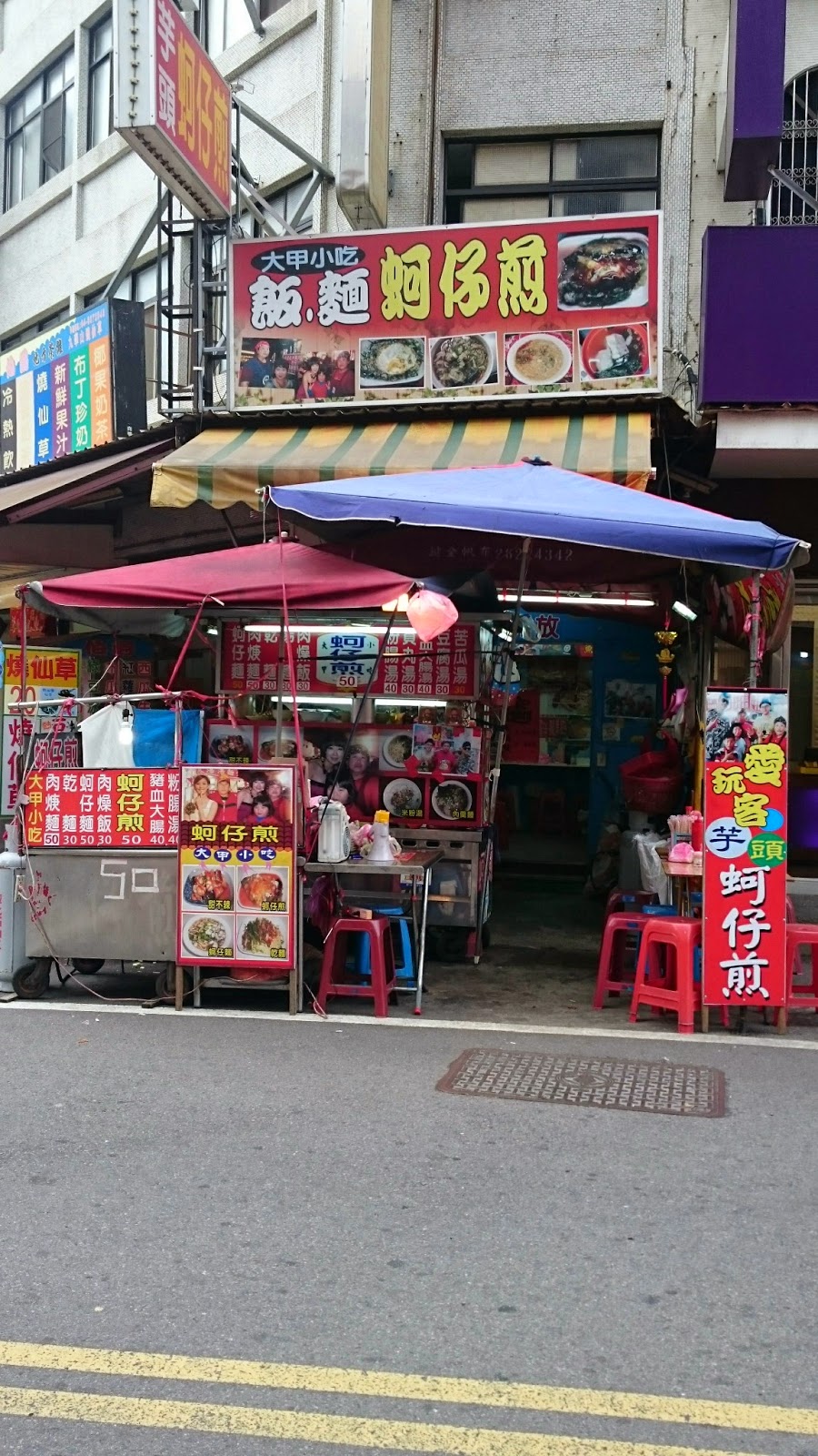 大甲鎮瀾宮門外的傳統小吃,愛玩客也有來介紹過的芋頭蚵仔煎,說真的我也沒吃過,所以馬上吸引到我了。